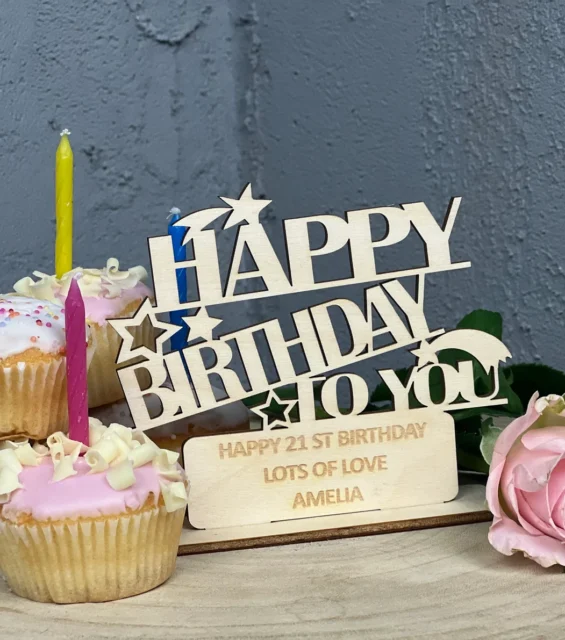Personalised Birthday Wooden Card Freestanding Plaque