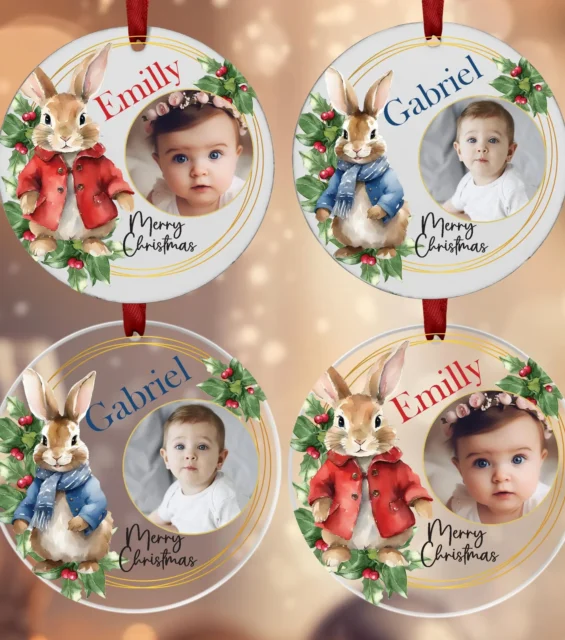 Personalised Christmas Bauble Baby Photo: Rabbit