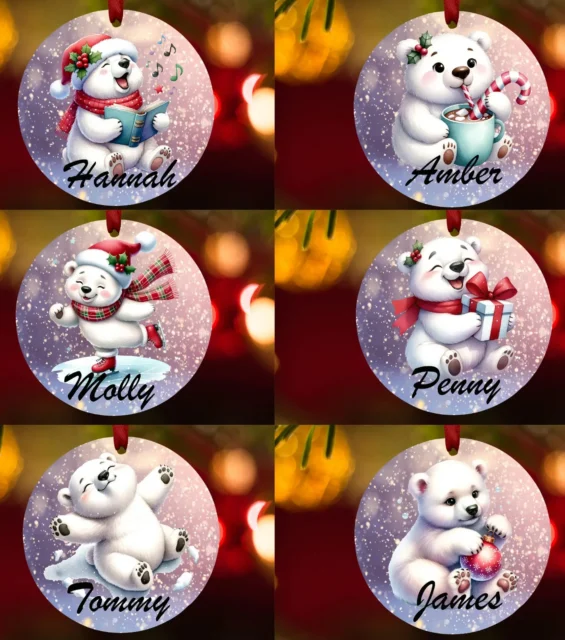 Personalised Bauble Christmas Tree Decoration: Polar Bear