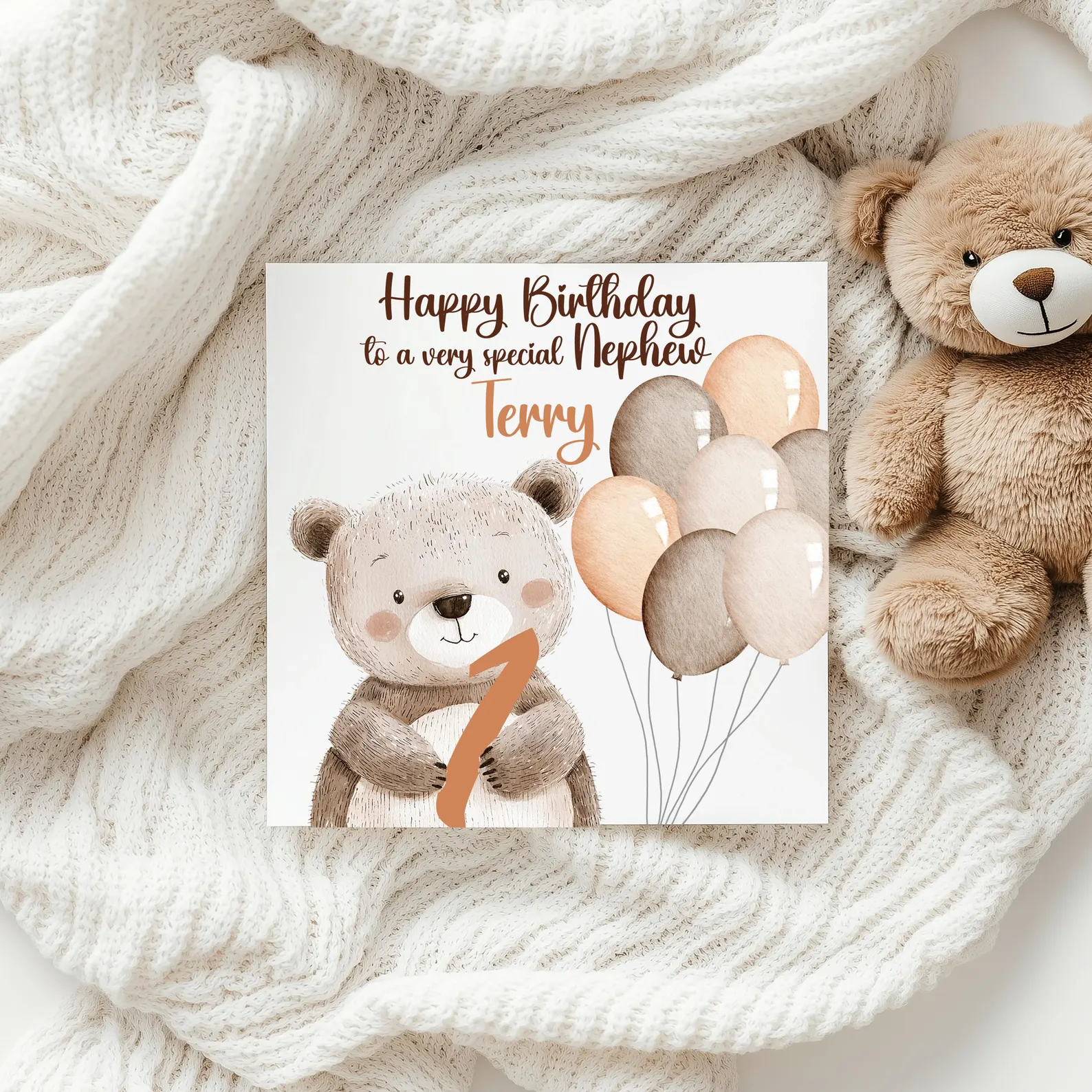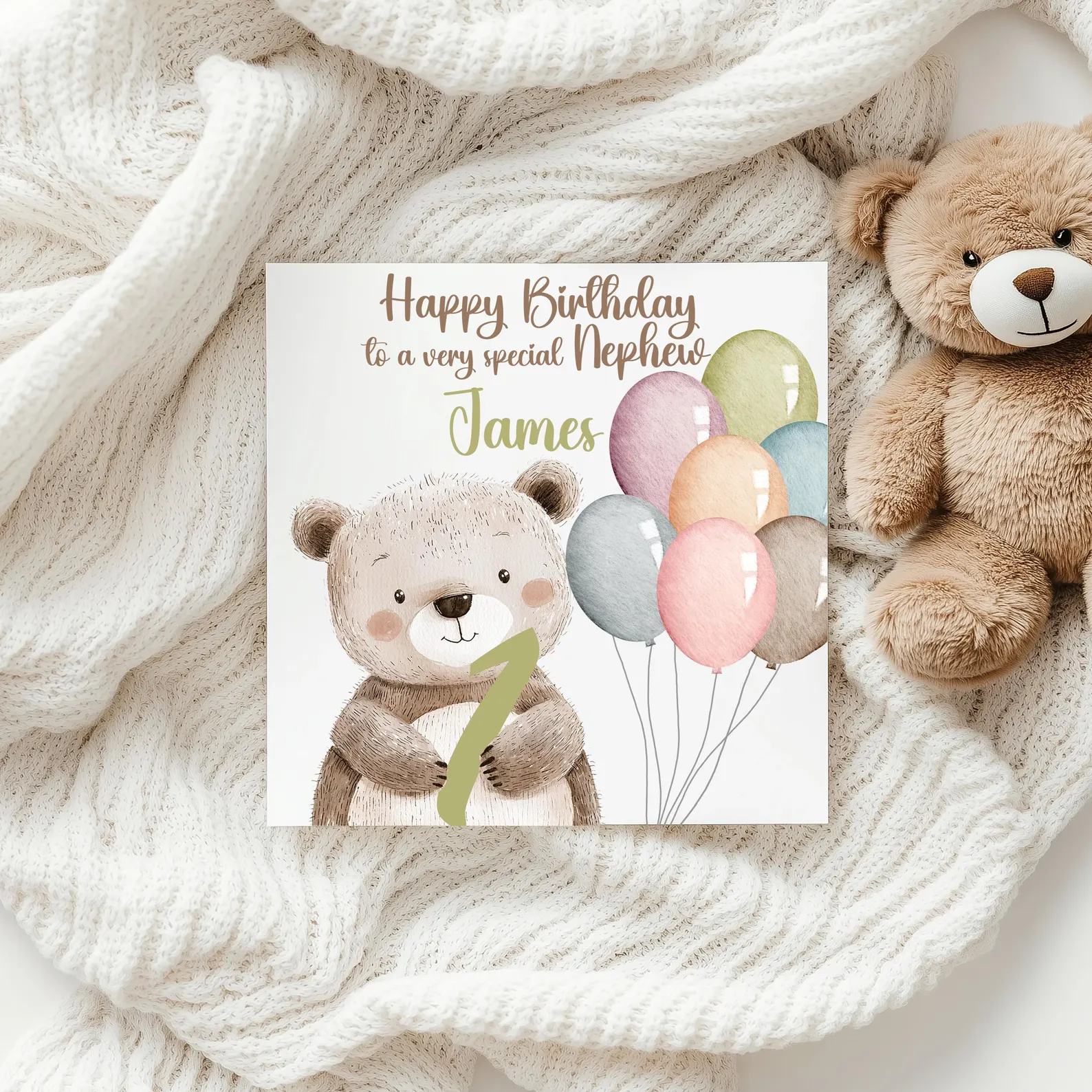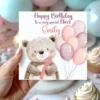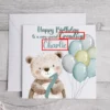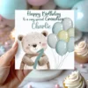 Celebrate your little one’s first birthday with this adorable personalised birthday card! Featuring a cute teddy bear and colourful balloons, this card is the perfect way to mark your child’s special milestone. Available in four lovely colours: blue, pink, brown, and multicoloured, this card is sure to bring joy to the whole family.