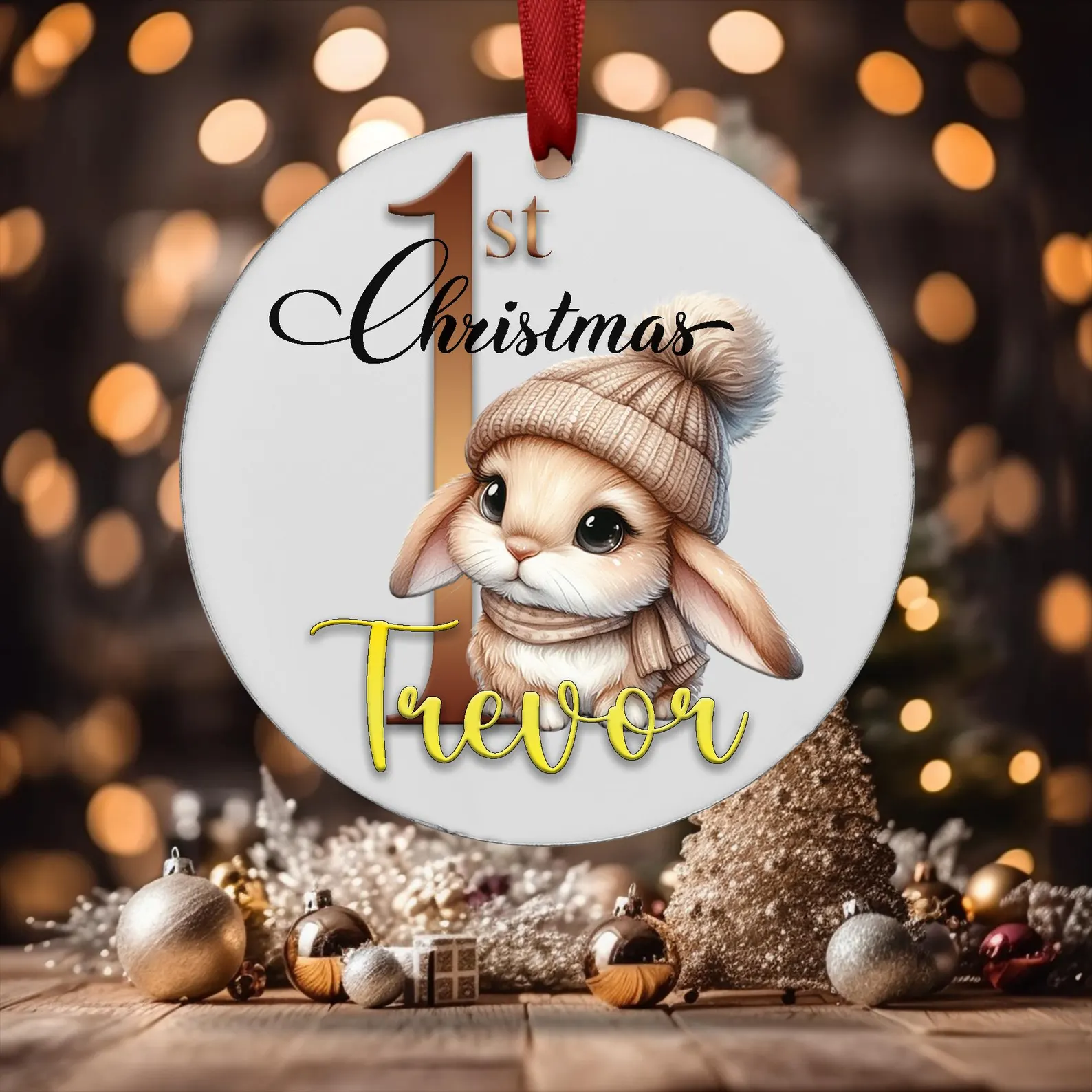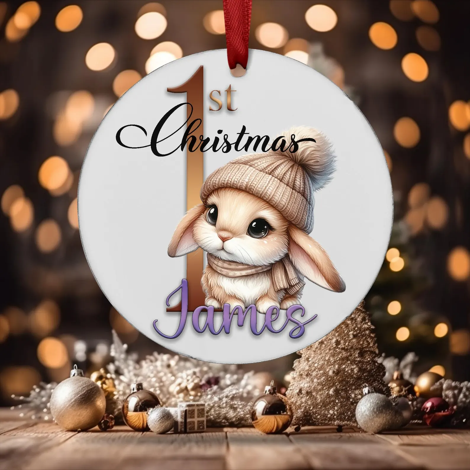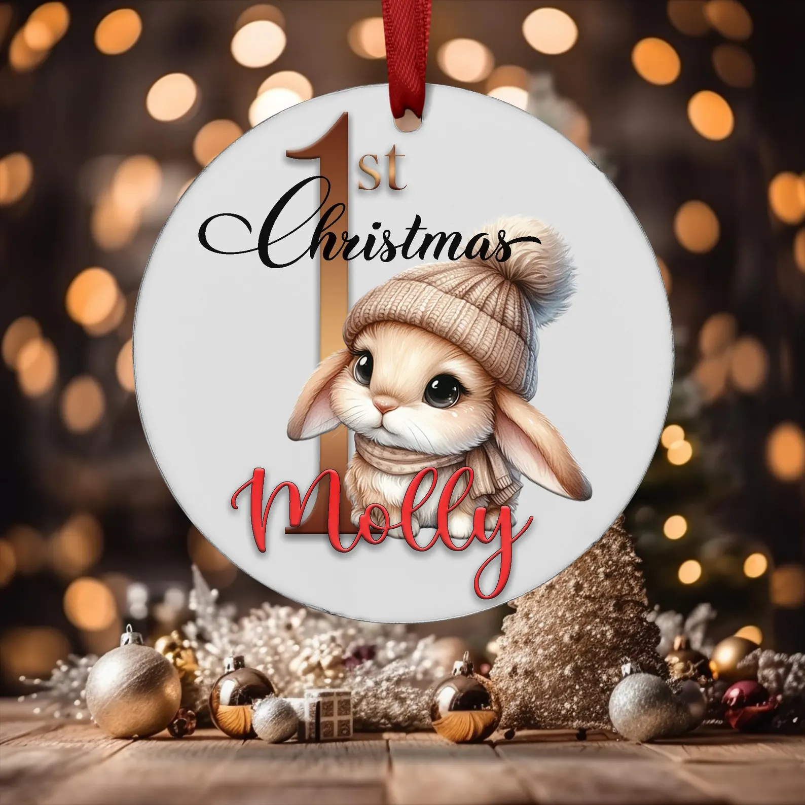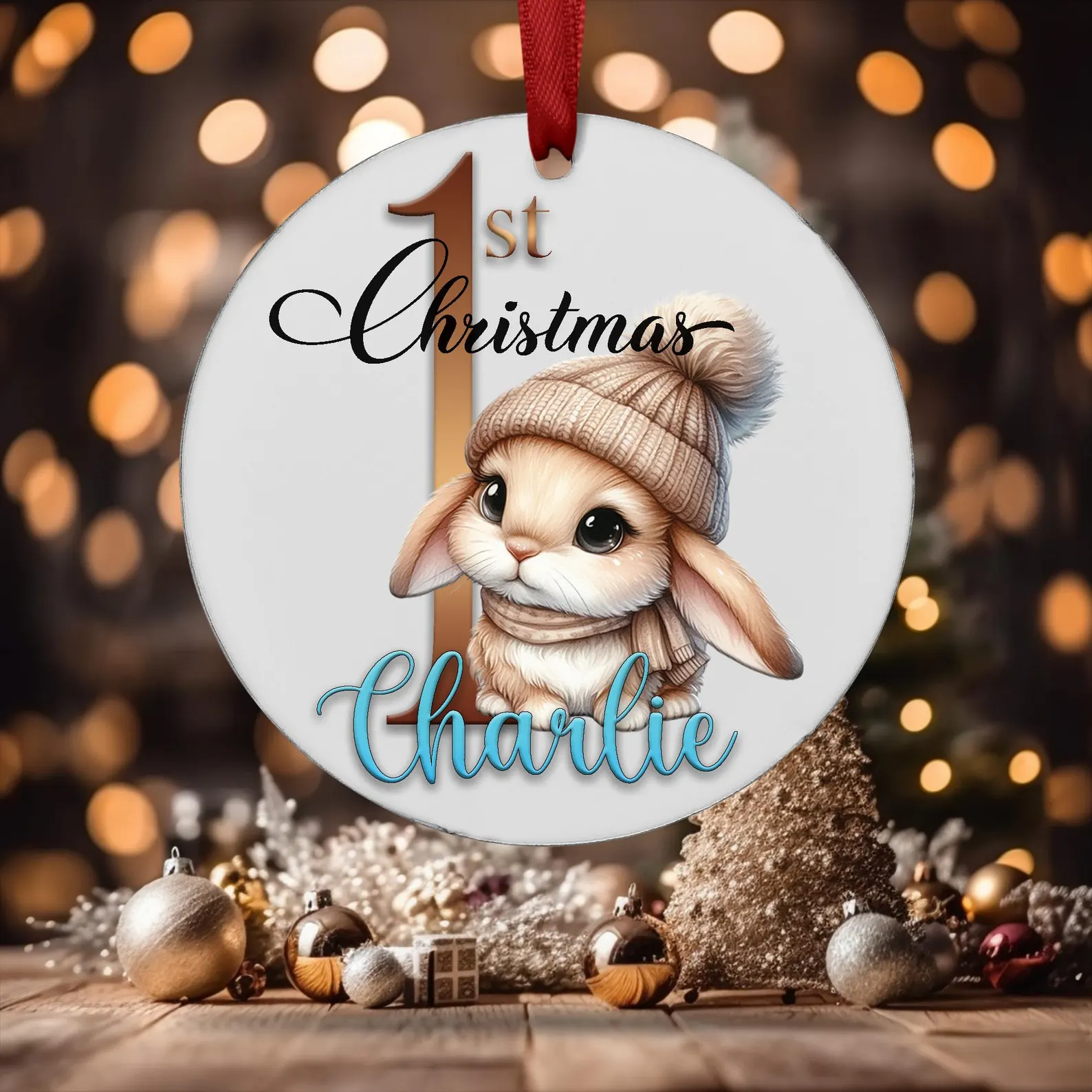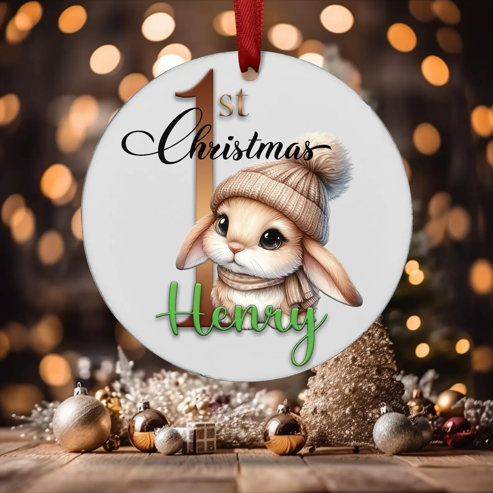 Celebrate your baby’s first Christmas in 2025 with a beautiful, personalised ornament! This keepsake ornament features an adorable bunny decorating a Christmas tree, customized with your baby’s name and the year. It’s a perfect addition to your Christmas tree or a thoughtful gift for new parents. Made with high-quality materials, this ornament will be a cherished keepsake for years to come.
