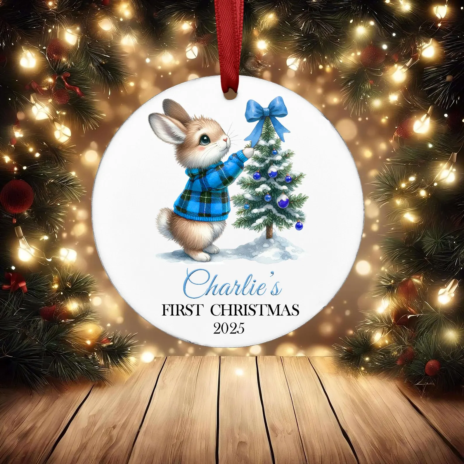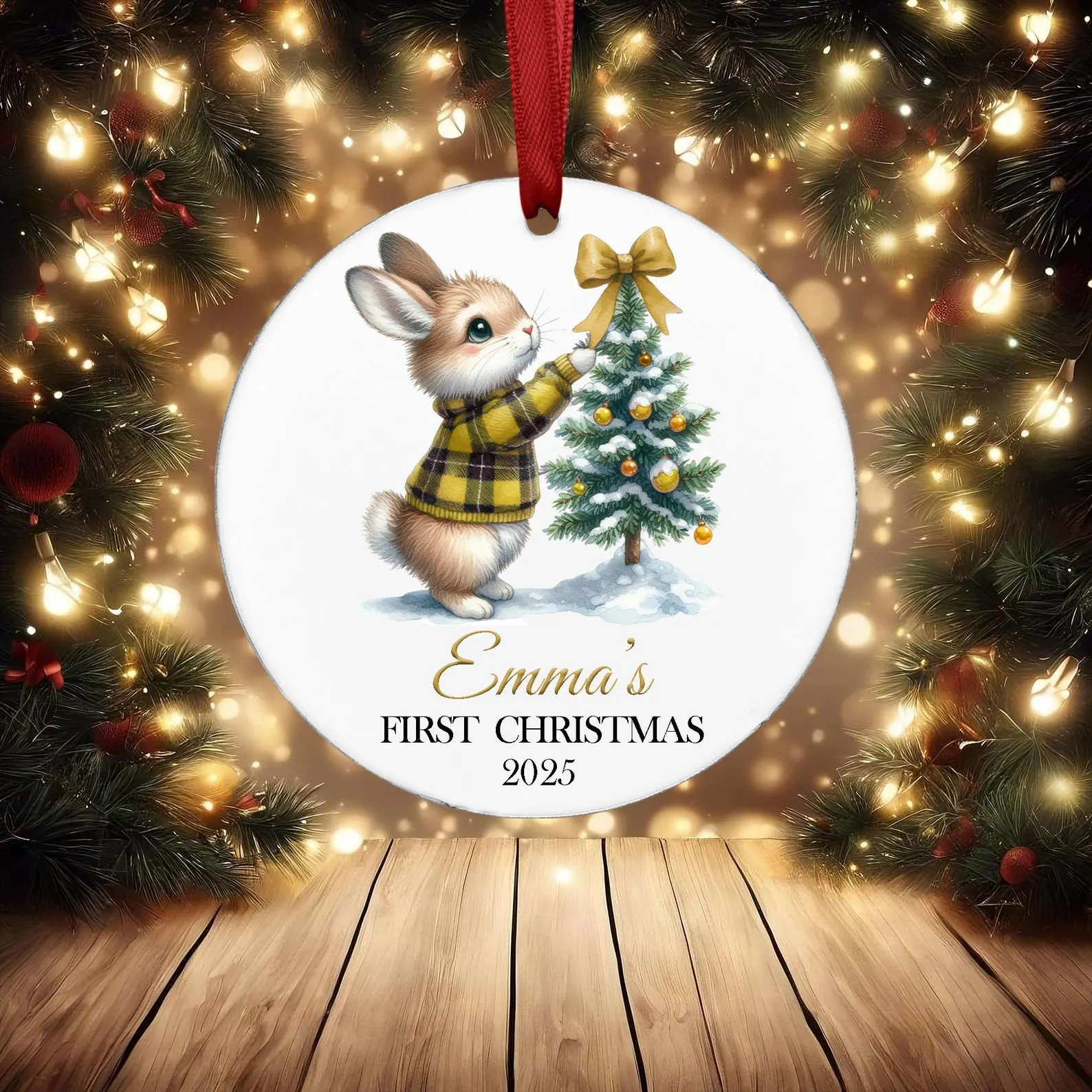 Celebrate your baby’s first Christmas in 2025 with a beautiful, personalised ornament! This keepsake ornament features an adorable bunny decorating a Christmas tree, customized with your baby’s name and the year. It’s a perfect addition to your Christmas tree or a thoughtful gift for new parents. Made with high-quality materials, this ornament will be a cherished keepsake for years to come.