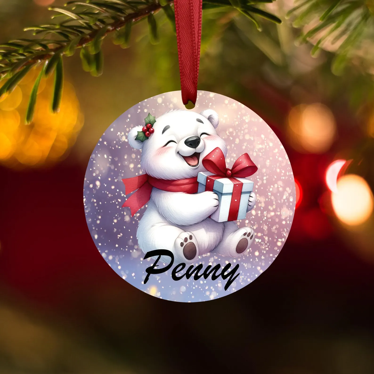 Make your Christmas extra special with this adorable personalised polar bear ornament! Each decoration features a cute polar bear and can be customised with a name, making it the perfect addition to your festive décor. Whether you’re decorating your tree or searching for the ideal gift for children, friends, or family, this ornament is sure to bring a smile. Crafted with attention to detail, it’s a lovely keepsake for celebrating the holidays.