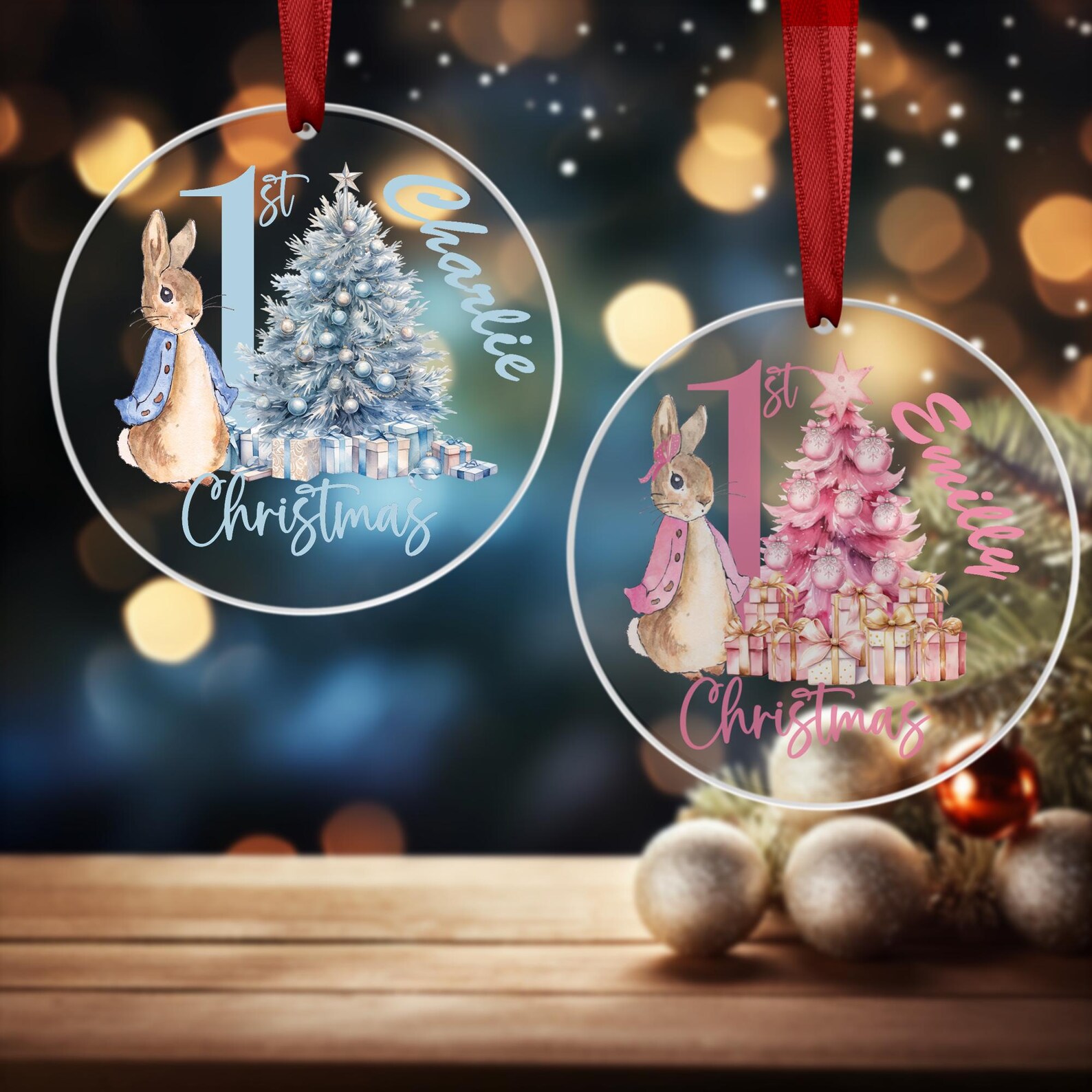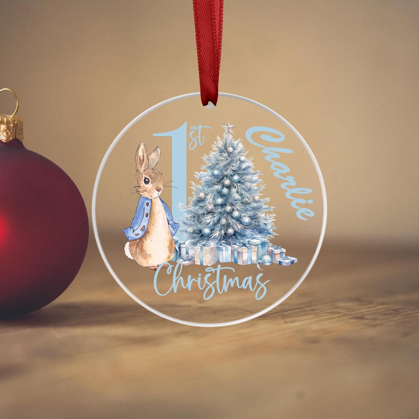 Personalised 1st Baby Christmas Ornament – 3mm Clear Acrylic