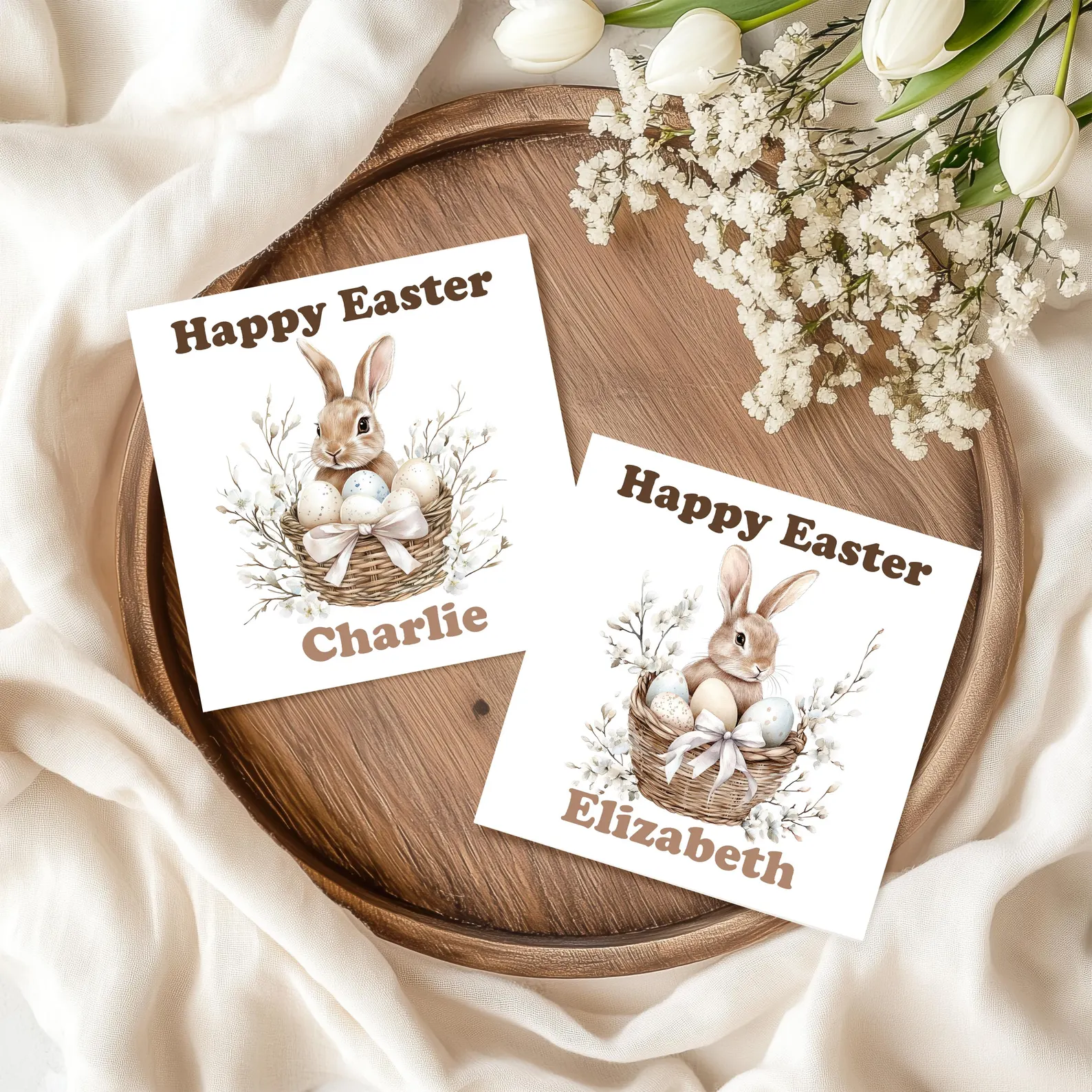 Celebrate the joy of Easter with a unique, personalised Easter card! Our cards feature adorable Easter bunny designs and can be customised to make your greetings extra special. Perfect for sending warm wishes to family and friends, each card is a beautiful way to spread the holiday spirit.