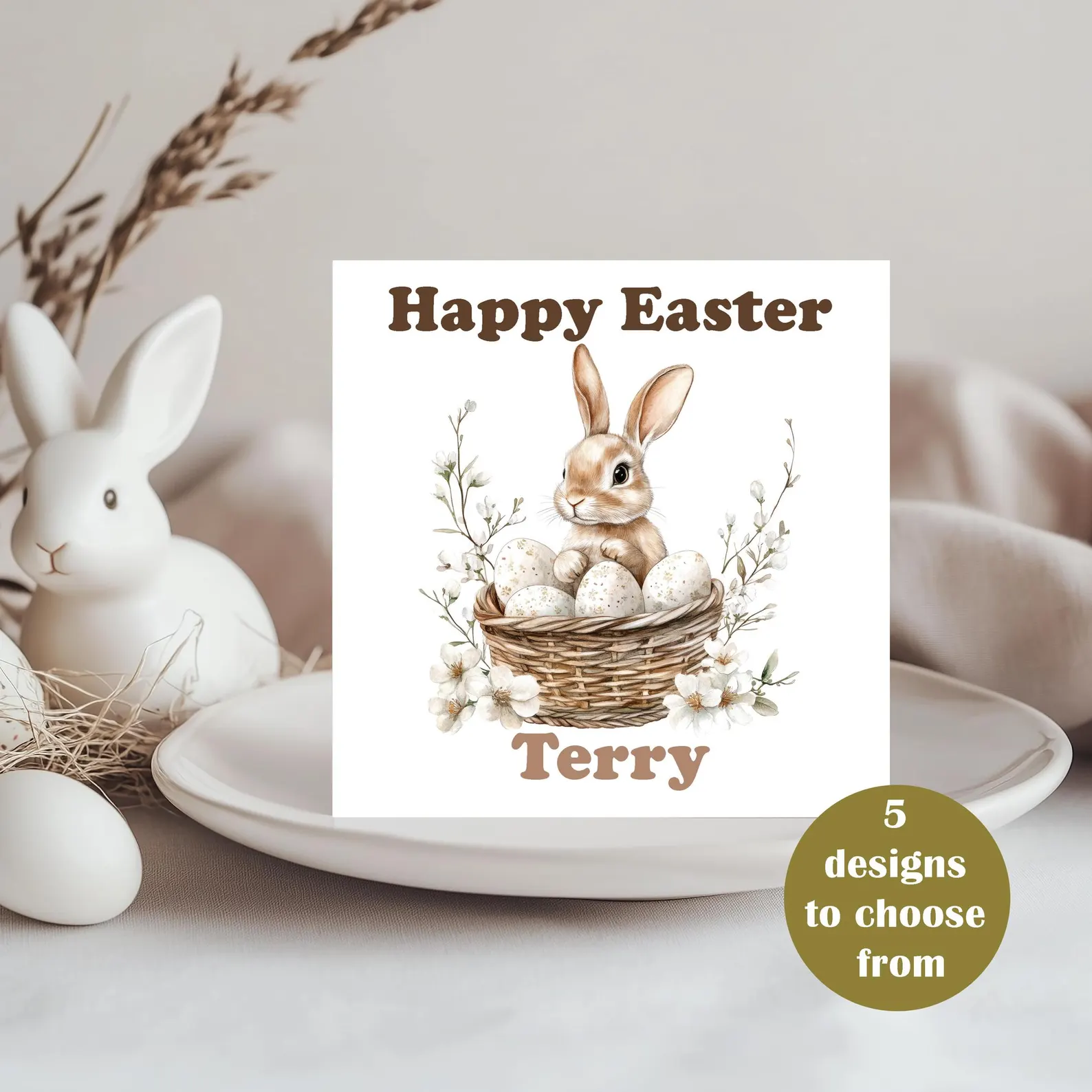 Design Choices: Choose from 5 charming Easter bunny designs.