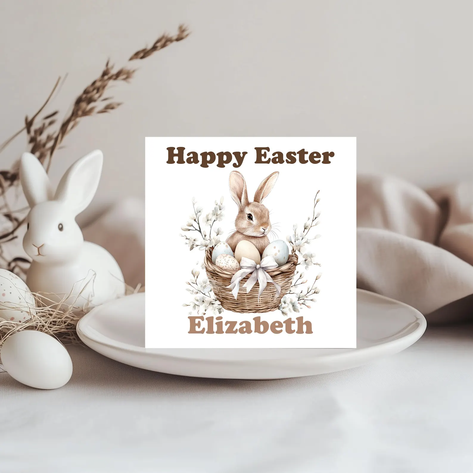 Personalised Easter Card Cute Bunny Design