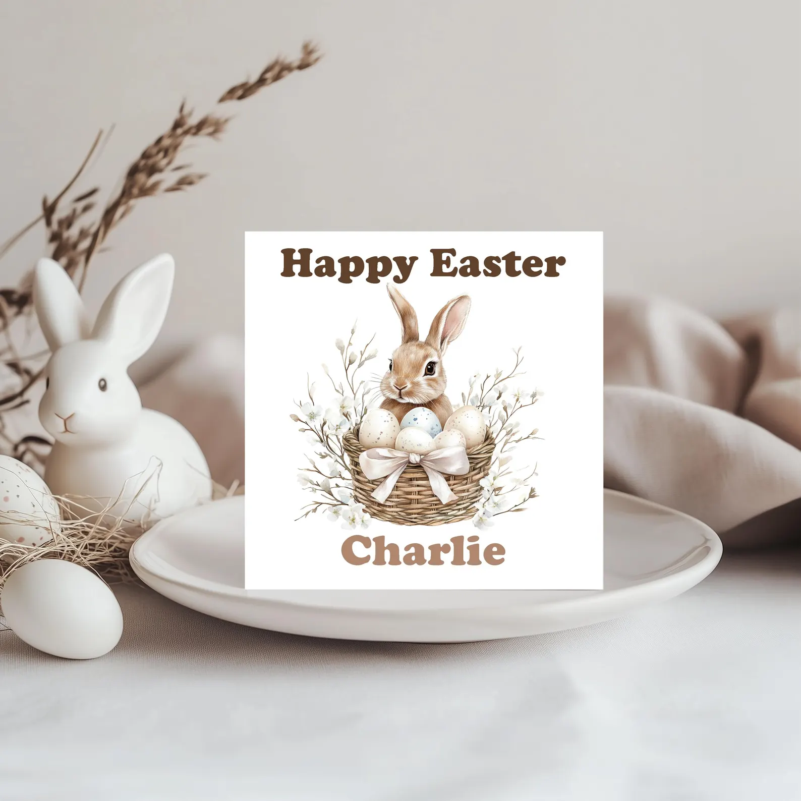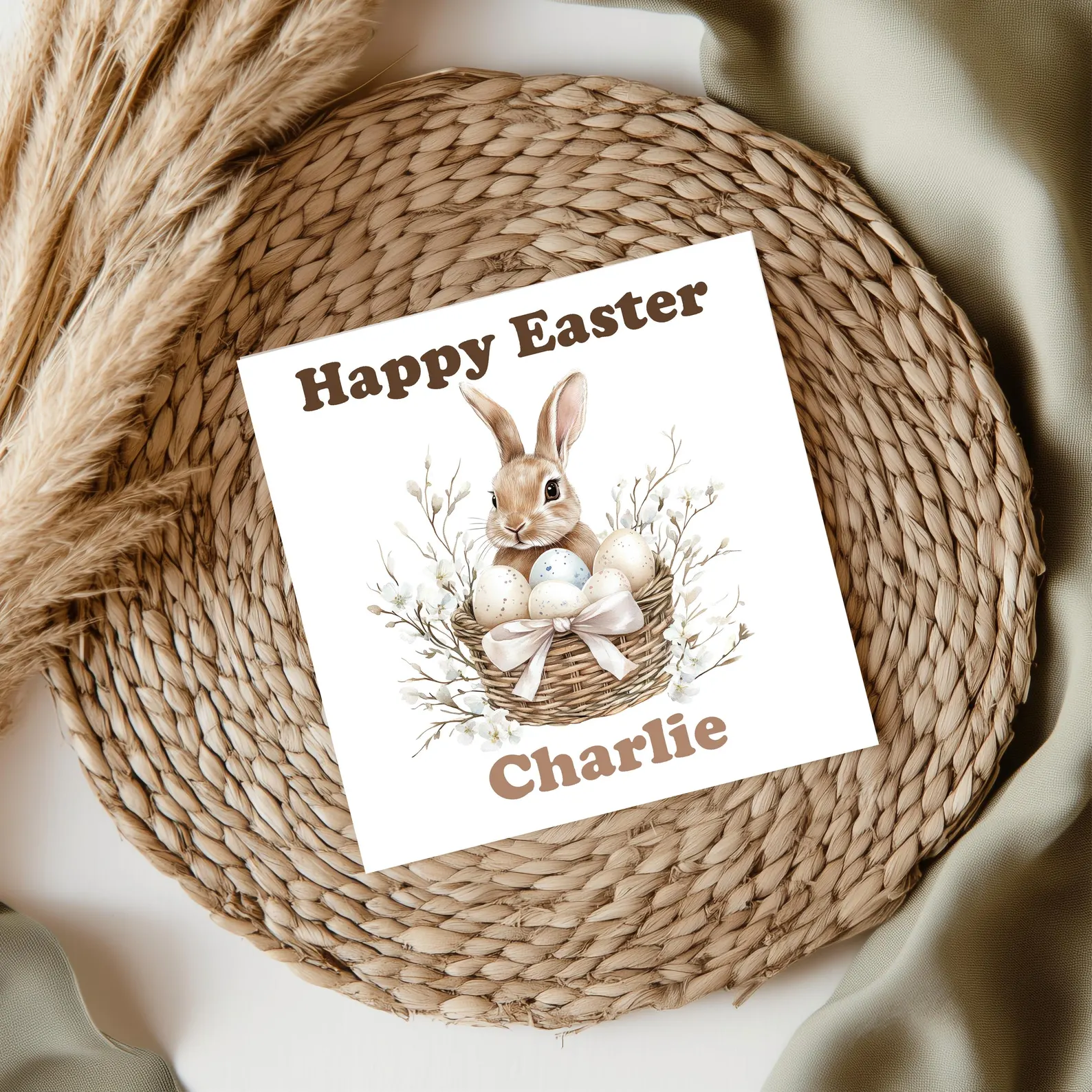 How to Personalise: Simply enter the name for the front of the card and your special message for the inside in the personalisation box when ordering. We will carefully print your chosen text to make this Easter card truly unique.
