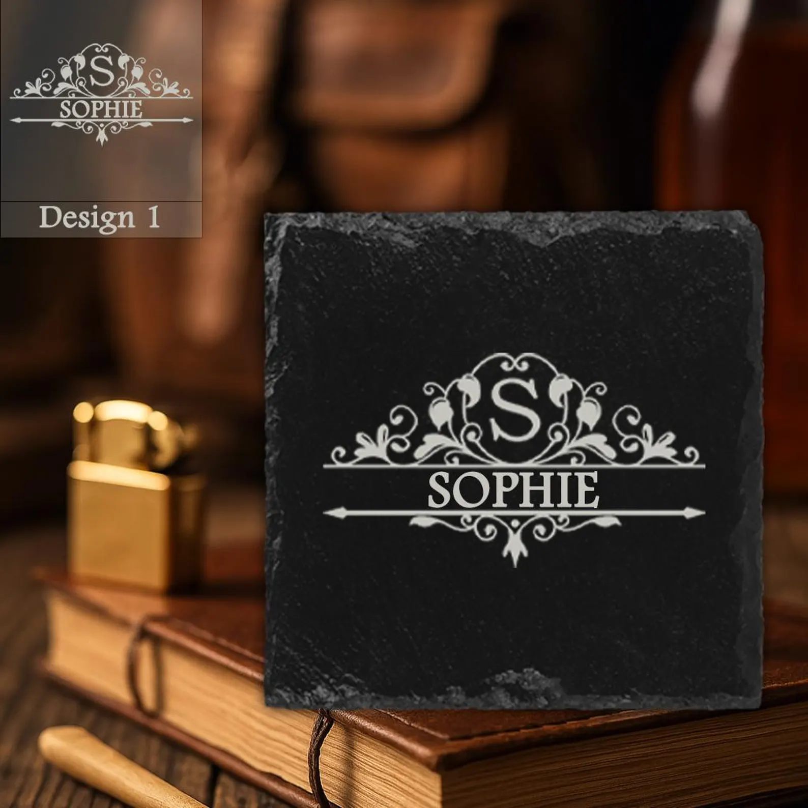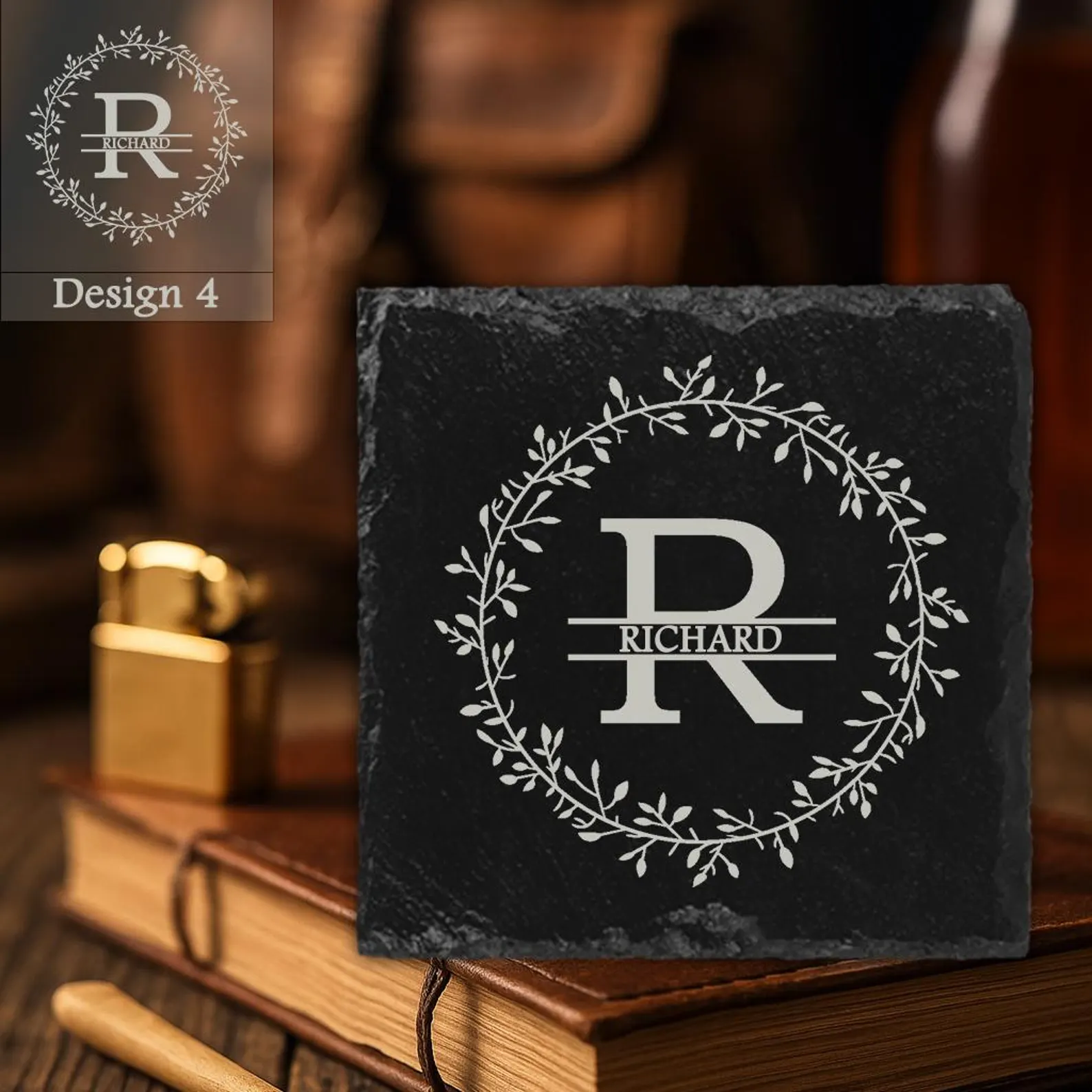 Optional slate coaster, engraved to match