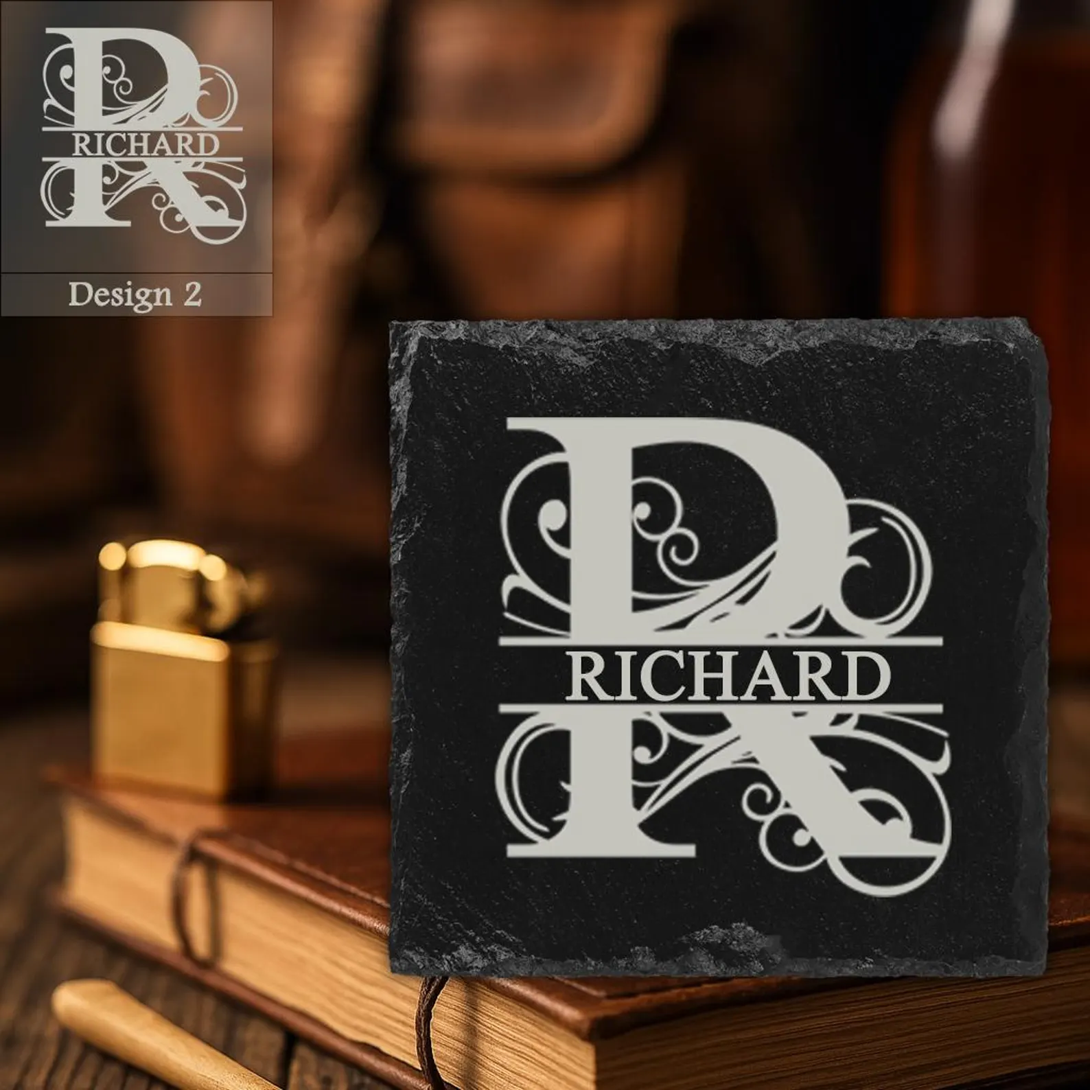 Optional slate coaster, engraved to match