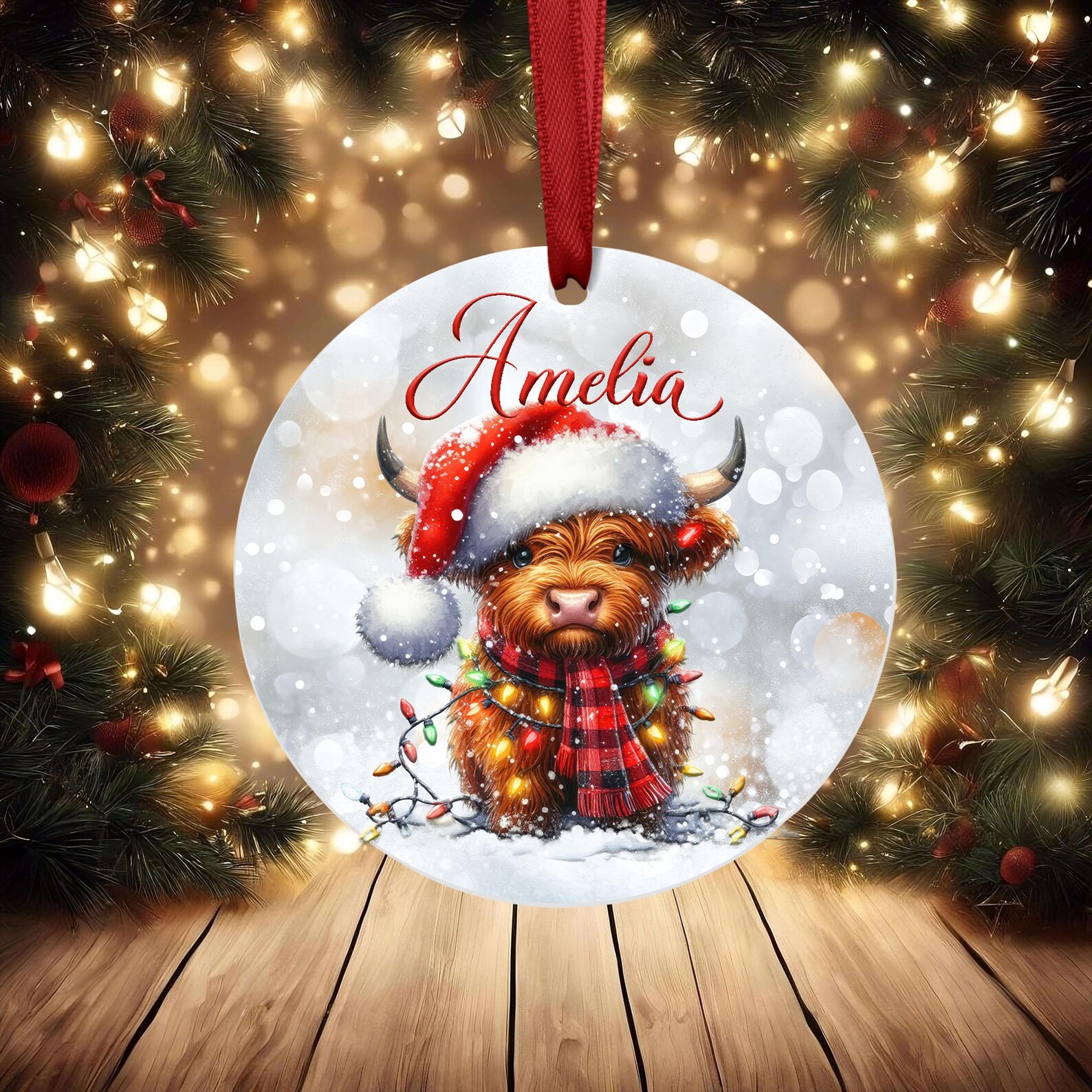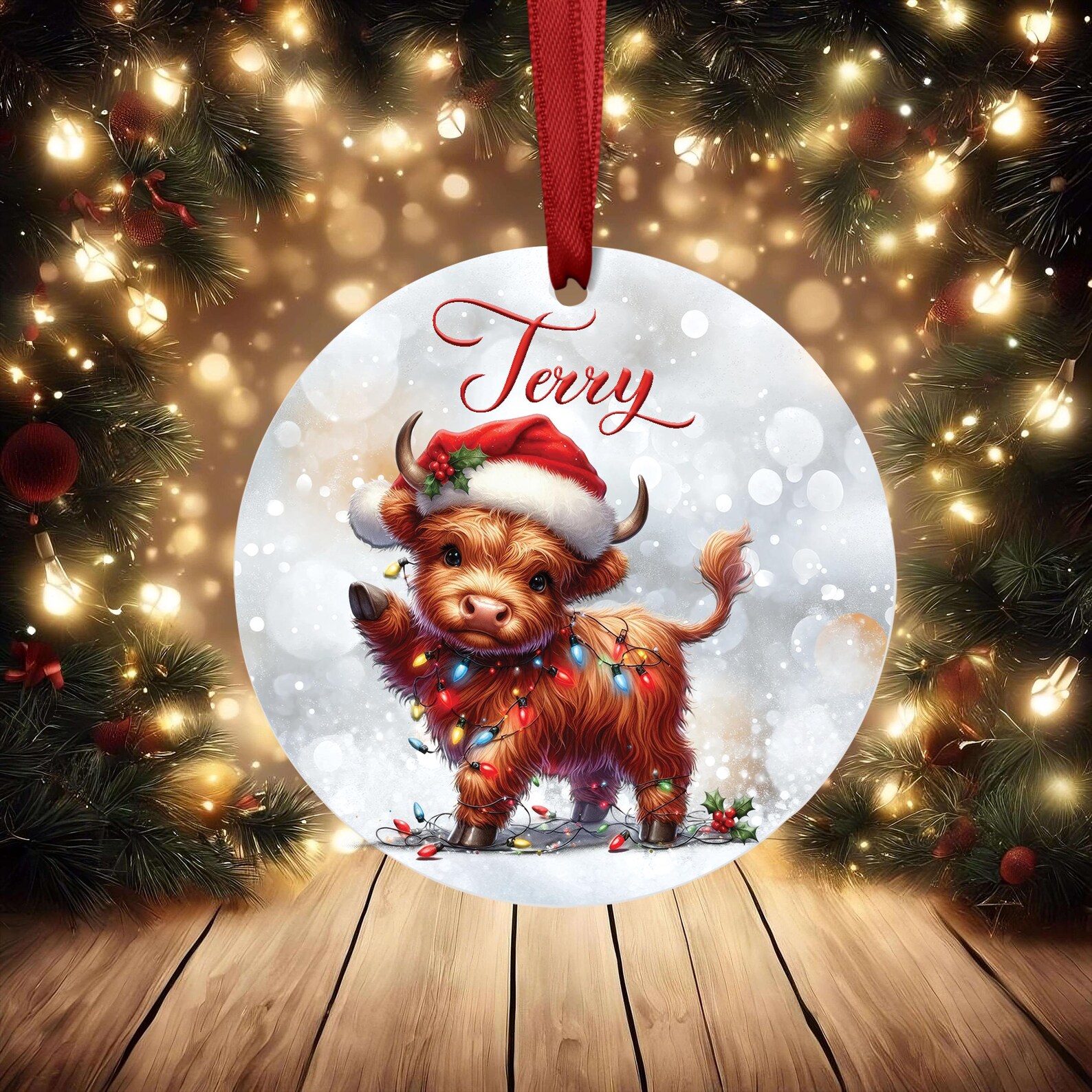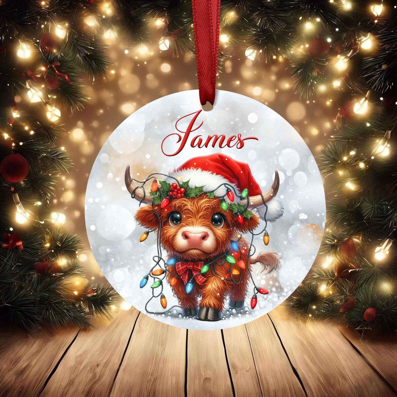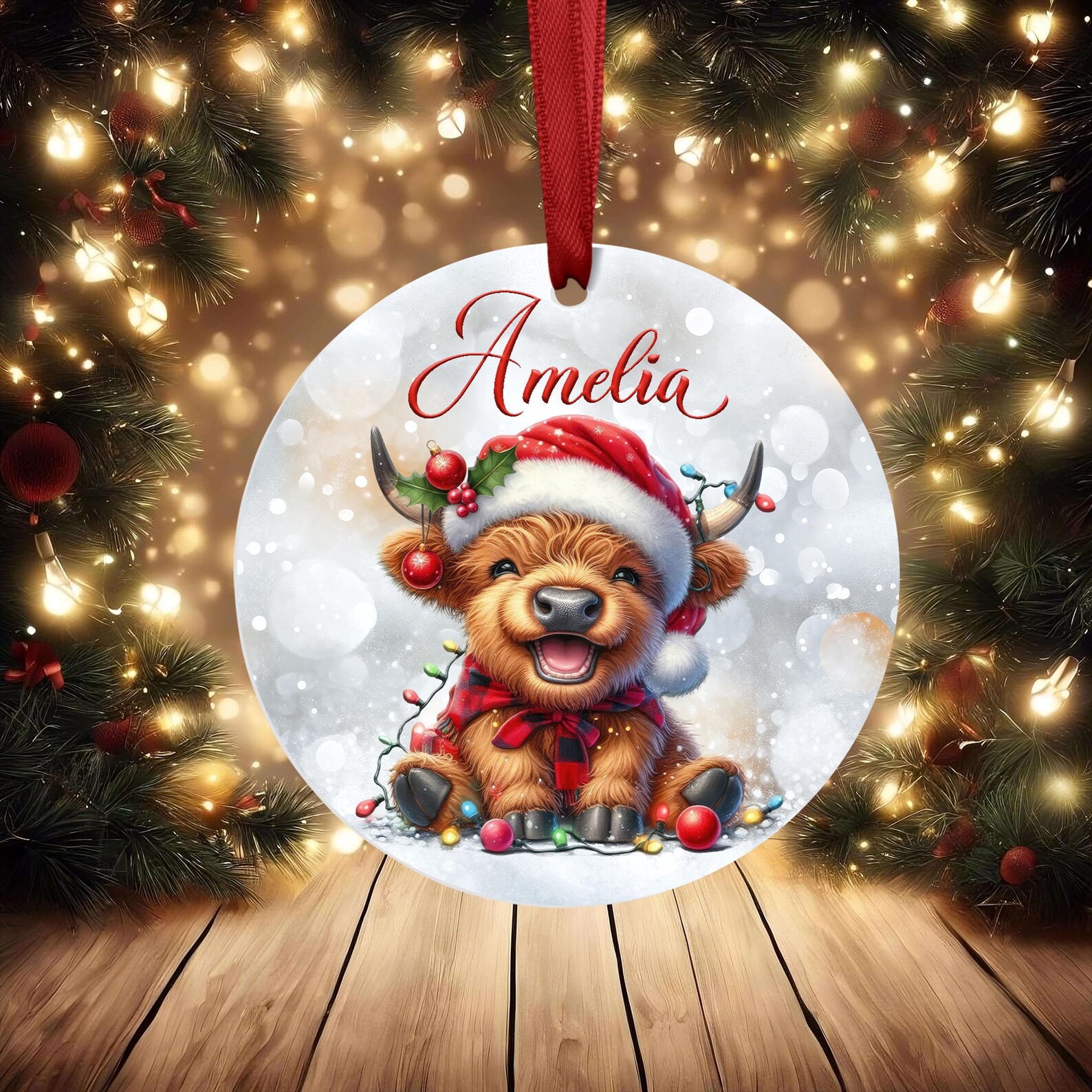 Personalised Christmas Ornament – Highland Cow Bauble