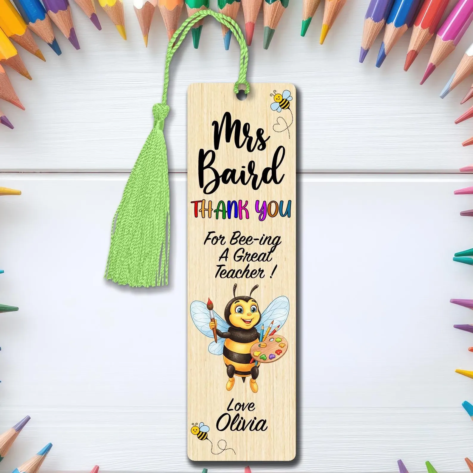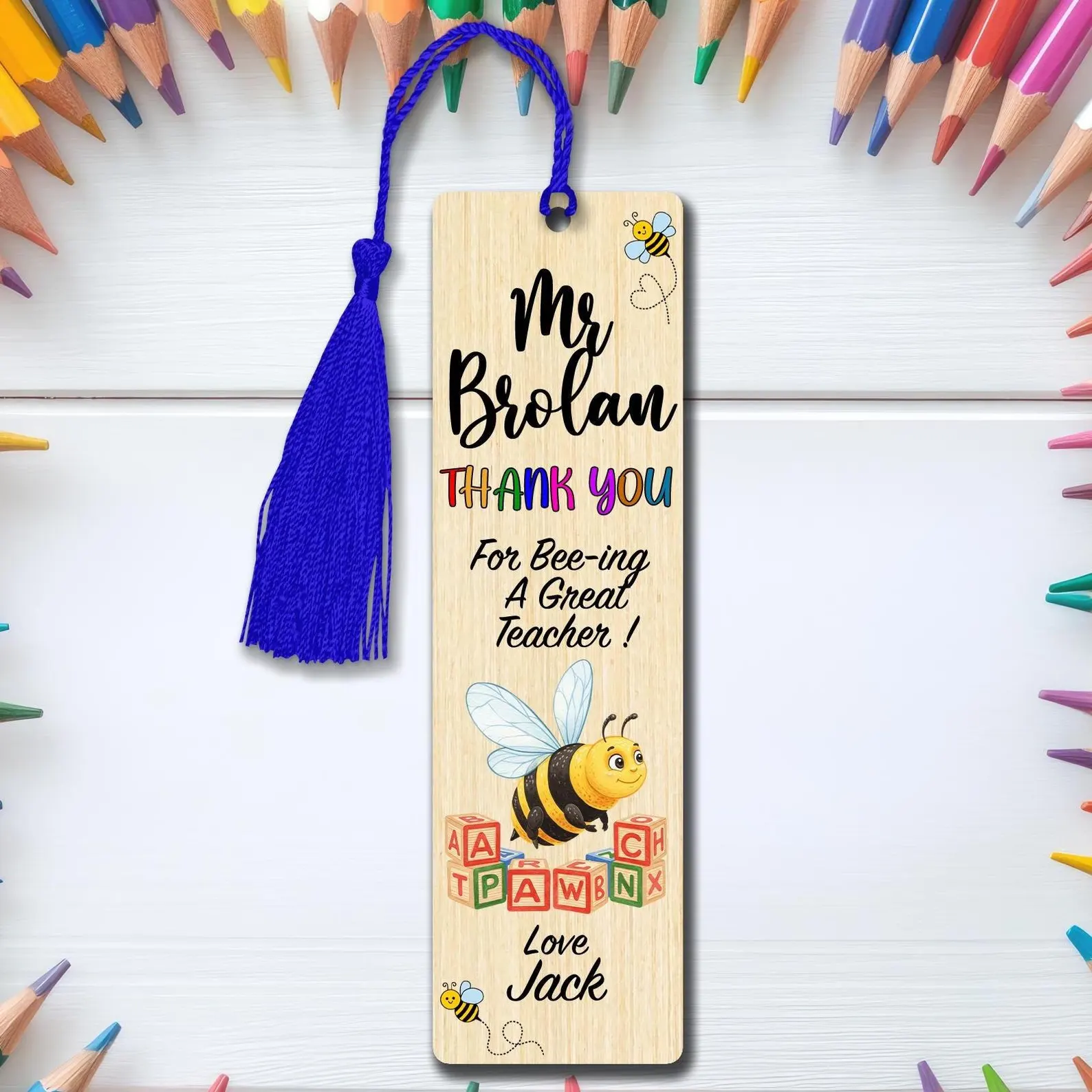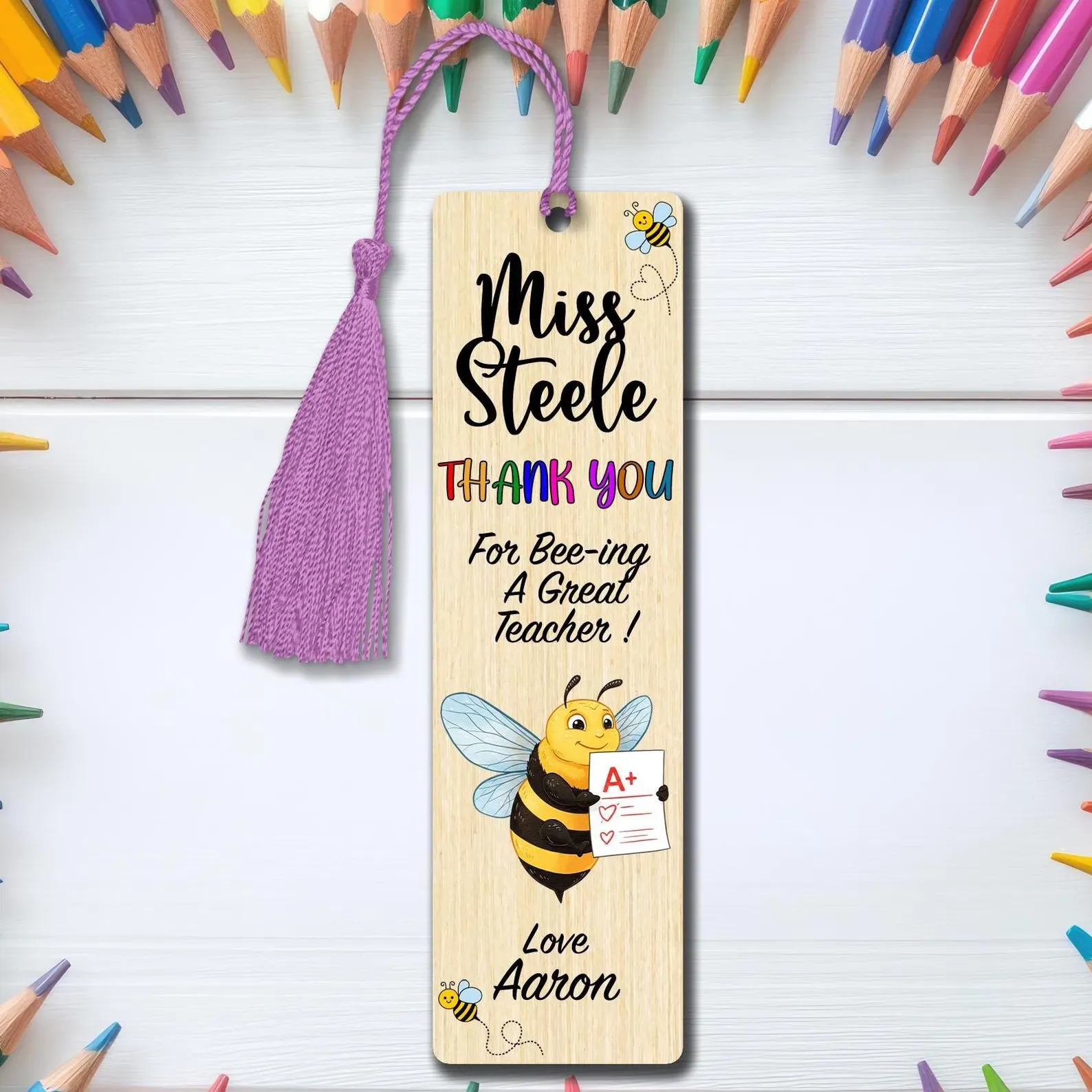🐝 Personalised Wooden Bookmark – Teacher Gift