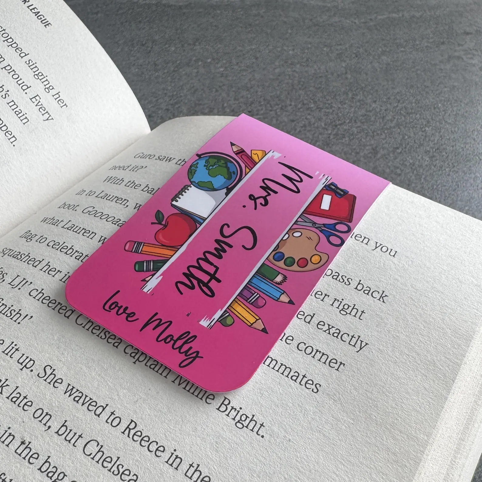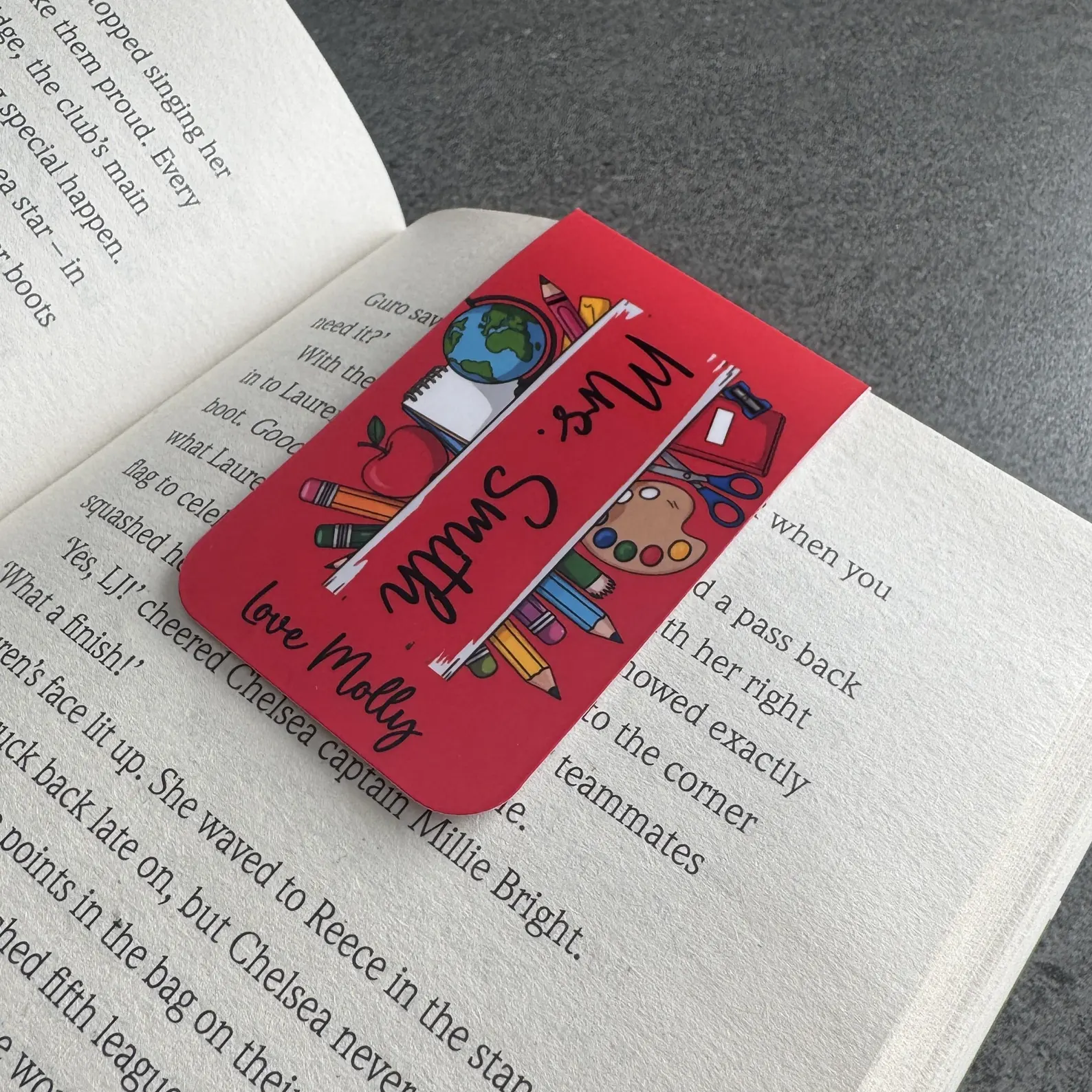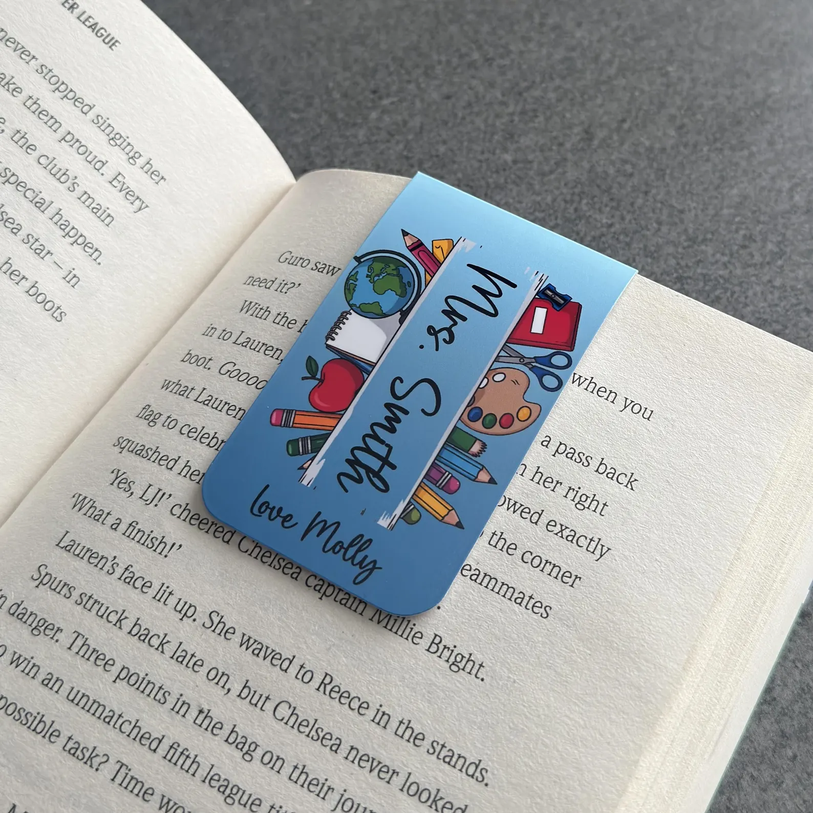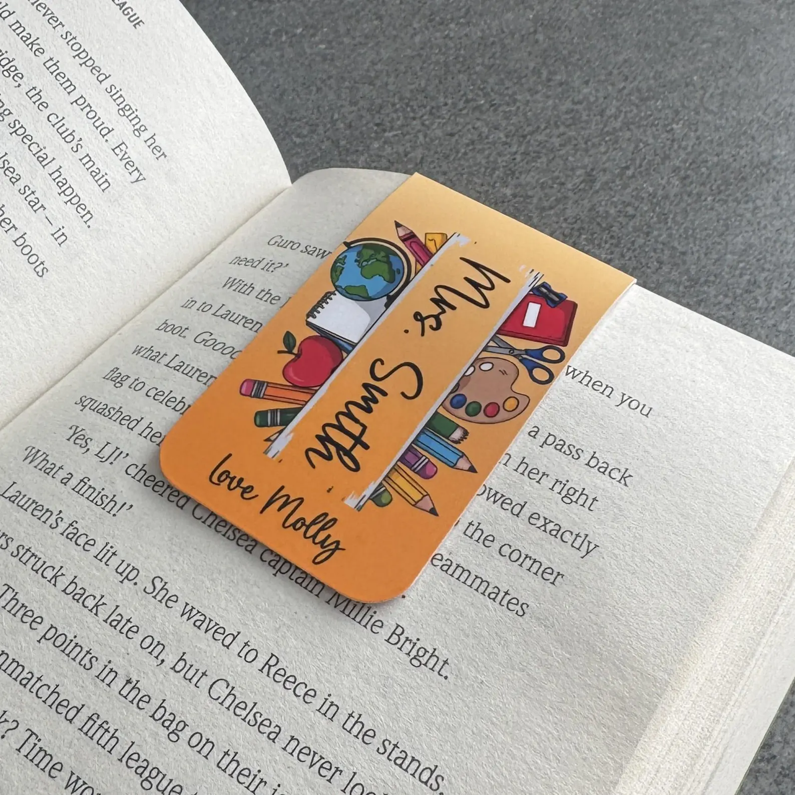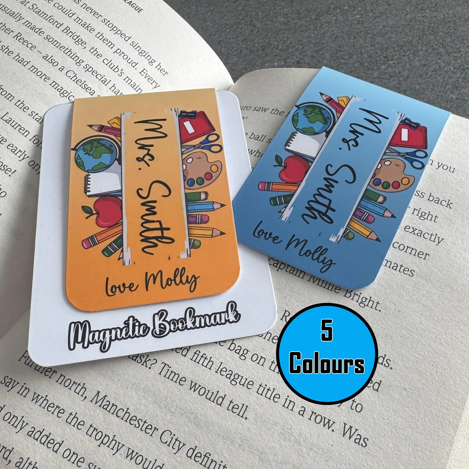 Say thank you to an amazing teacher with this vibrant personalised magnetic bookmark – a thoughtful and practical gift for the end of the school year.