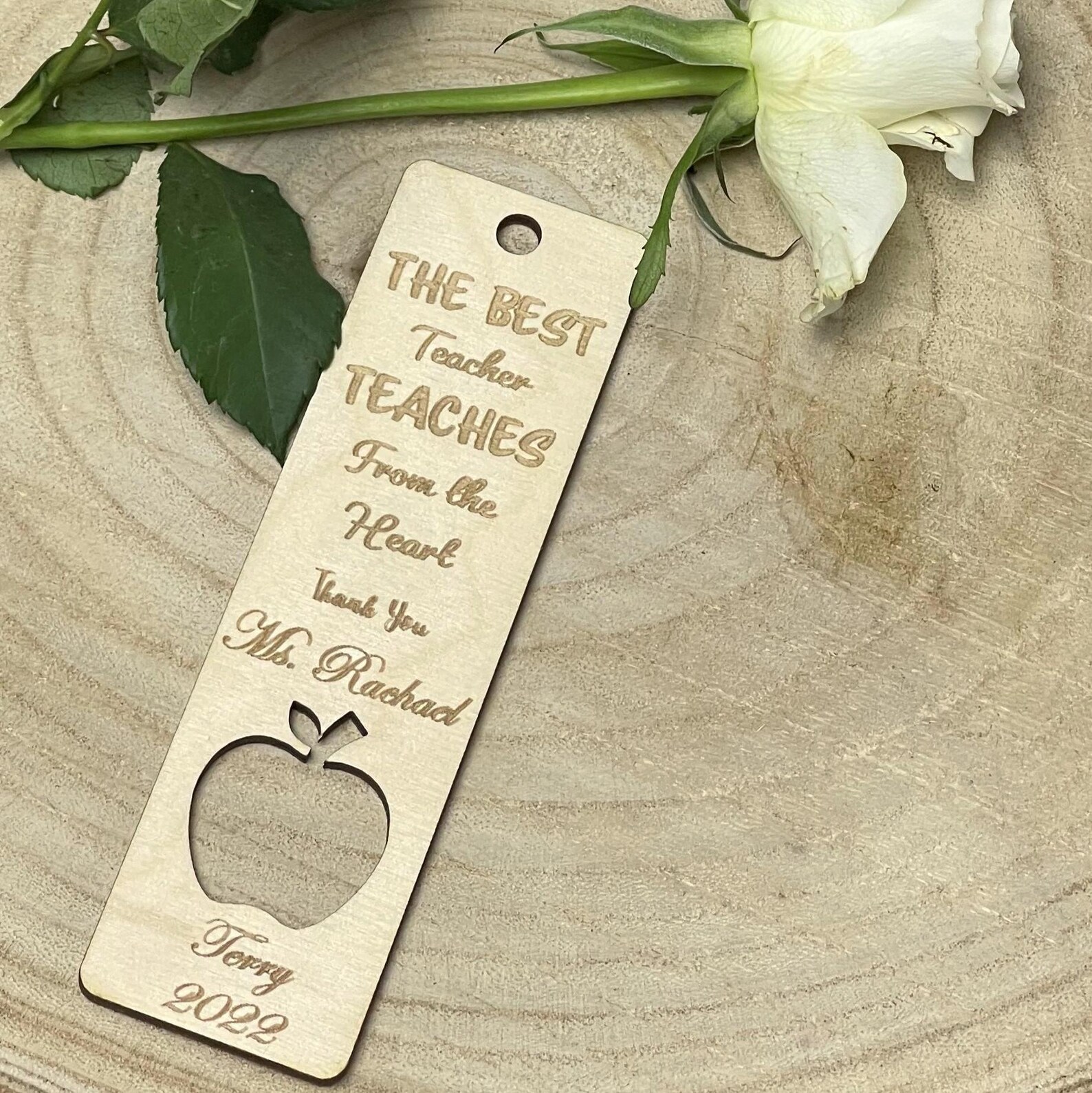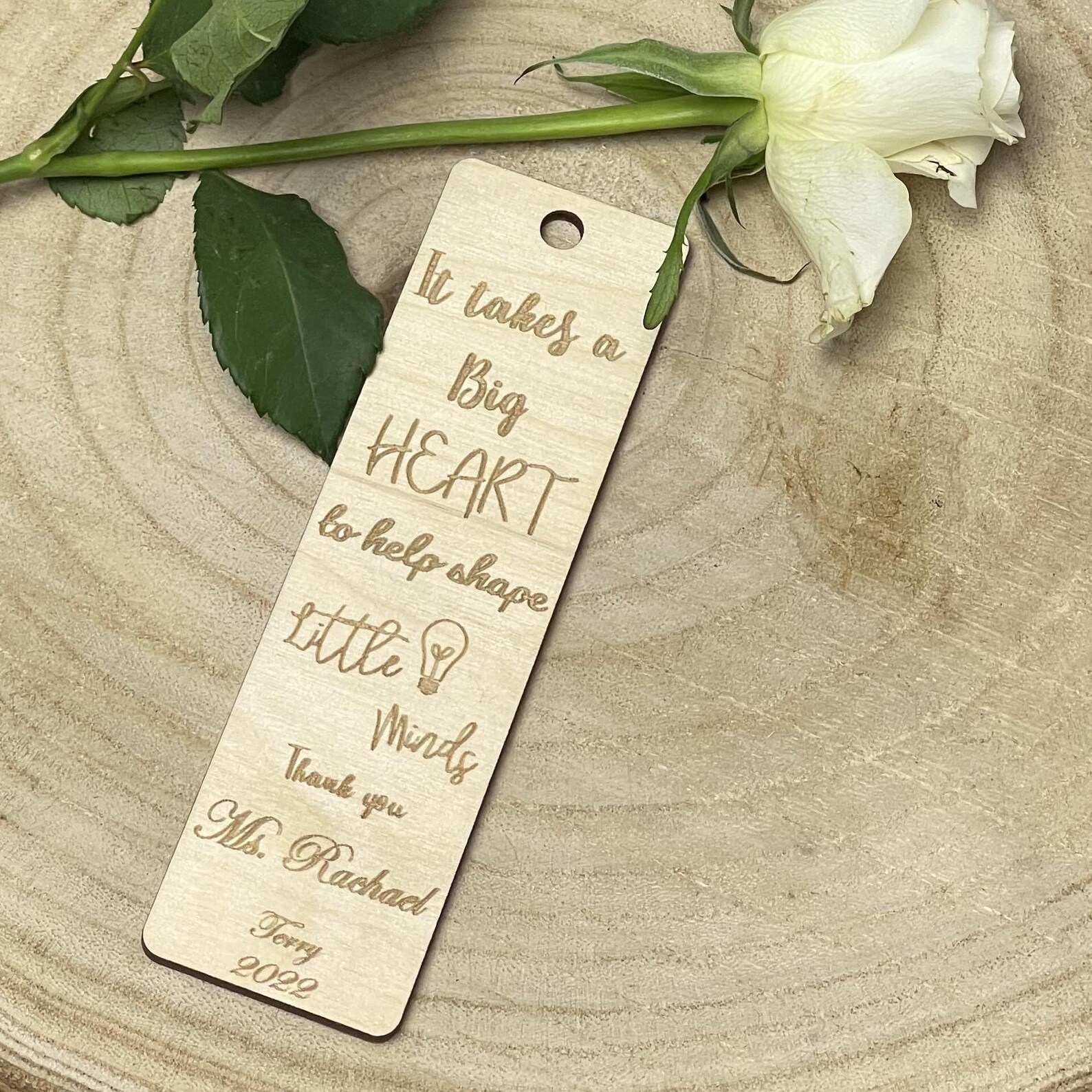 Made from smooth, high-quality wood, each bookmark is carefully engraved with your chosen teacher’s name and features a thoughtful thank-you quote.