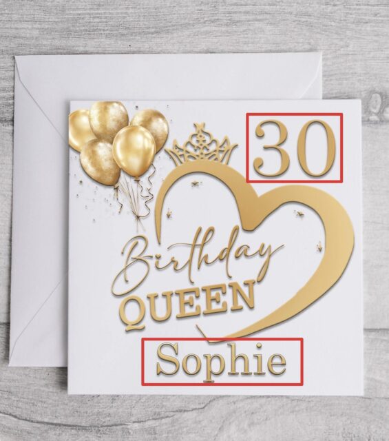 Personalised Birthday Queen Card: Gold Heart