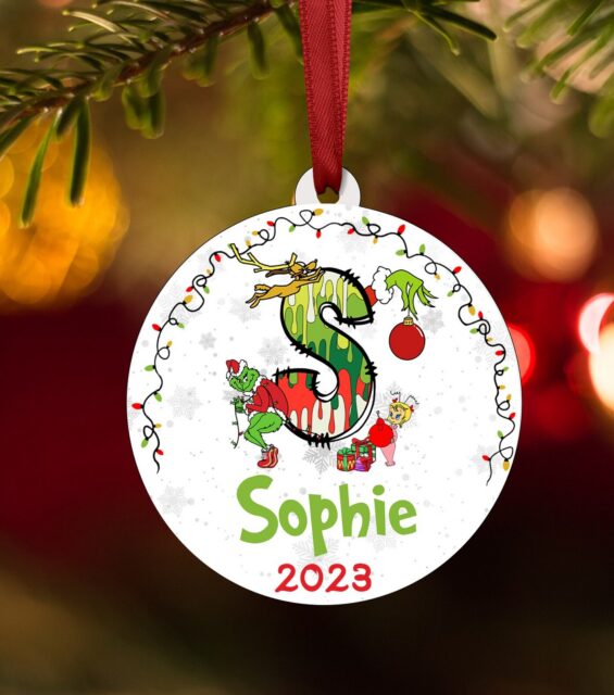 Personalised Christmas Tree Decoration Ornament: Grinch Bauble