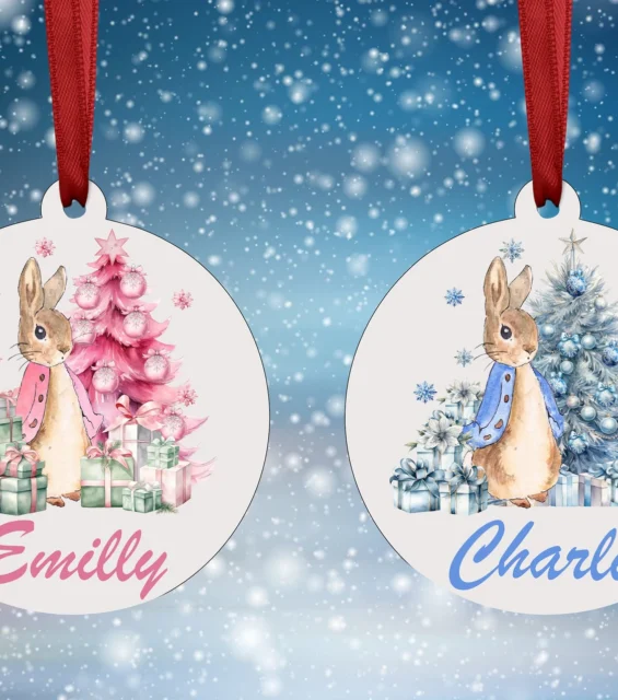 Personalised Christmas Tree Bauble Decoration Ornament: Rabbit