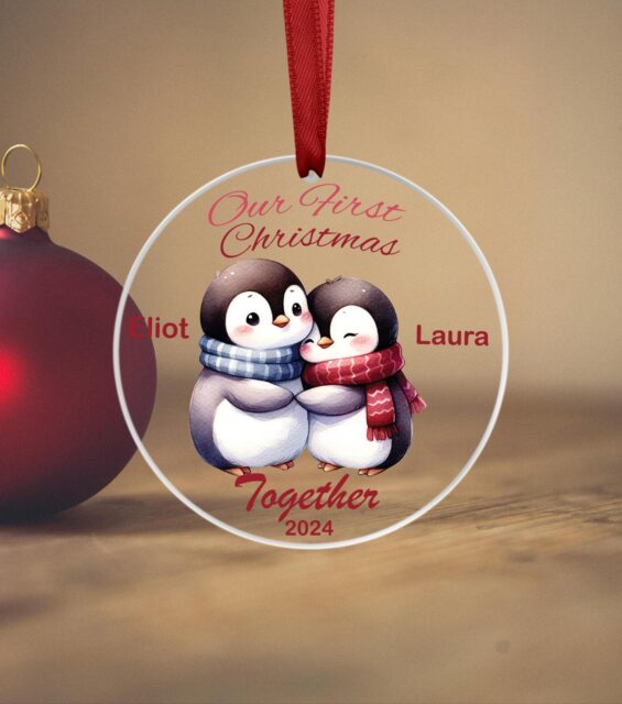 Personalised Christmas Tree Decoration Ornament Mr&Mrs Penguins