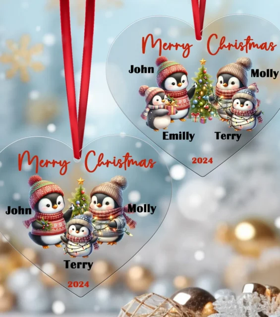 Personalised Christmas Tree Bauble Ornament Penguin Family