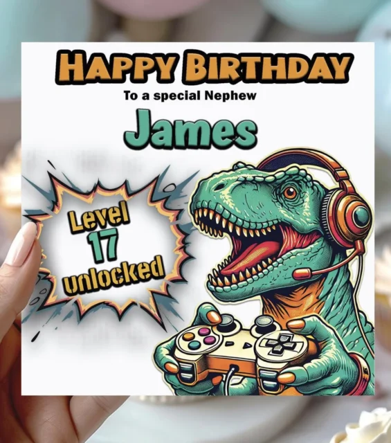 Personalised Gaming Birthday Card: Dinosaur