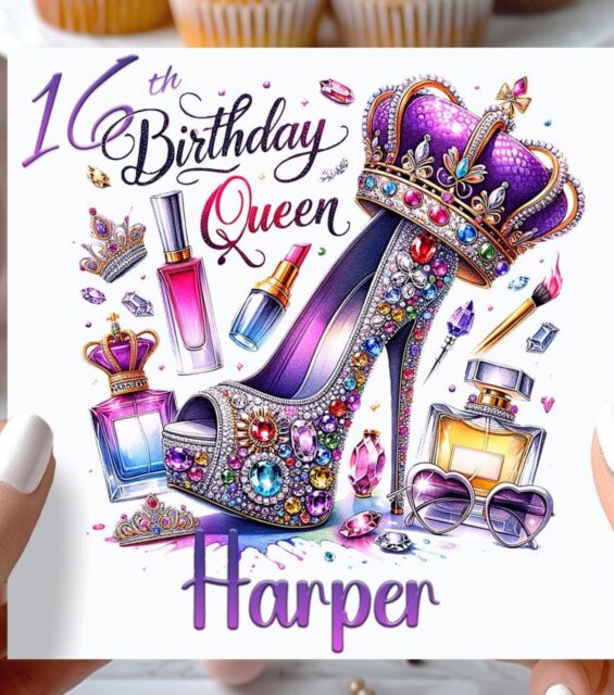 Personalised Queen Birthday Card: Makeup Theme