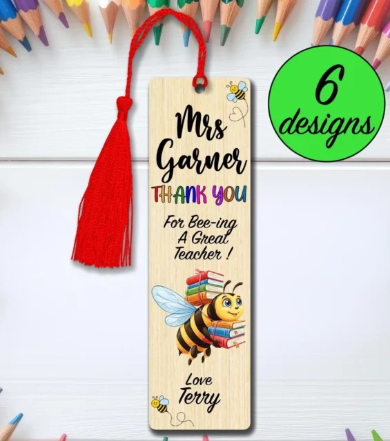Personalised Teacher Bookmark: Bee Design